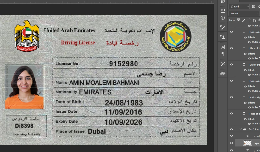 دانلود فایل لایه باز (psd) فتوشاپ گواهینامه رانندگی امارات